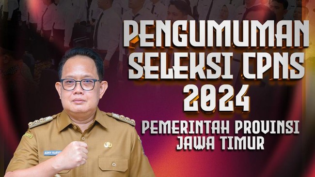 Pemerintah Provinsi Jawa Timur resmi membuka seleksi Calon Pegawai Negeri Sipil (CPNS) Tahun 2024. Sebanyak 2.314 formasi dibuka meliputi 1.800 formasi tenaga teknis dan 514 formasi tenaga kesehatan.