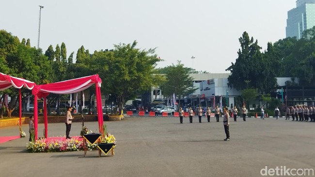 Polda Metro Jaya menggelar upacara Hari Juang Polri pagi ini, Rabu (21/8/2024). Upacara dilaksanakan di lapangan Presisi Ditlantas Polda Metro Jaya.