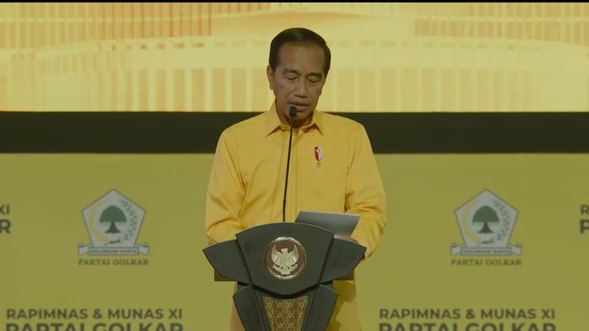 Presiden Joko Widodo (Jokowi) sempat menyinggung dirinya memakai baju kuning di acara penutupan Munas Partai Golkar. Jokowi lantas menjelaskan alasannya mengenakan baju berwarna khas Partai Golkar tersebut.
