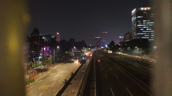Massa aksi sempat menerobos ruas Tol Dalam Kota di depan DPR dan membakar ban di tengah jalan tol. Polisi pun telah membubarkan massa dari Tol Dalam Kota sekitar pukul 19.30 WIB.