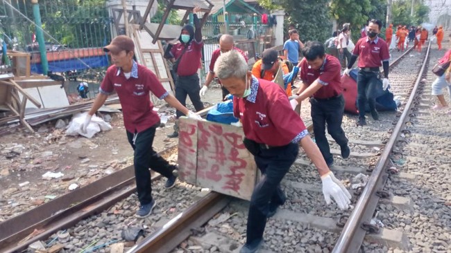 KAI Daop 1 berkolaborasi dengan petugas Penanganan Prasarana dan Sarana Umum (PPSU Pasar Senen) untuk membersihkan kawasan pinggir rel dari Pasar Senen hingga Gang Sentiong. KAI menyesali warga yang masih membuang sampah sembarangan.