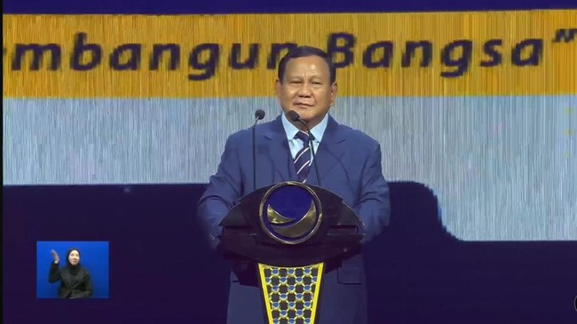 Presiden terpilih Prabowo Subianto mengucapkan selamat kepada Surya Paloh yang kembali terpilih menjadi Ketum NasDem periode 2024-2029. Prabowo menyapa Paloh dengan panggilan 'Mas Brewok'.