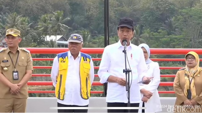 "Dengan mengucap bismillahirrahmanirrahim, 16 jembatan pengganti Callender Hamilton, 22 ruas jalan yang dibangun dengan inpres jalan daerah, dan jembatan Ciloseh di Provinsi Jawa Barat saya resmikan pagi hari ini," ujar Jokowi dalam pidatonya seperti disiarkan YouTube Sekretariat Presiden, Kamis (29/8/2024).