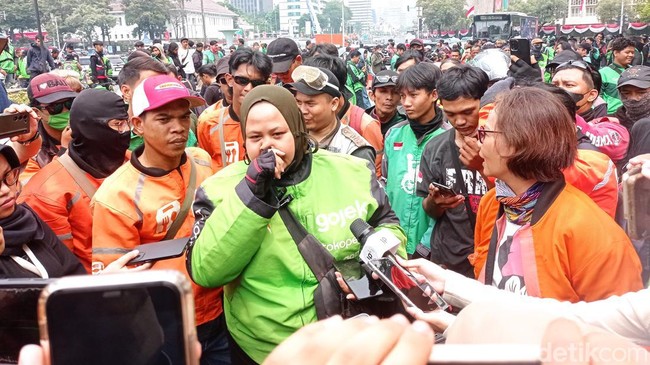 Massa ojek online (ojol) dan kurir se-Jabodetabek di Patung Kuda, Jakarta Pusat, mulai berdatangan untuk melakukan demo. Mereka menuntut tarif yang layak hingga insentif.