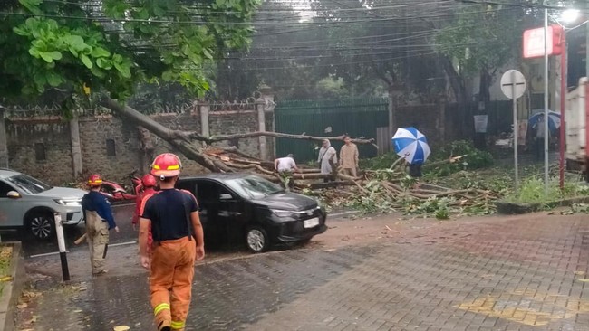 "Iya (petugas) masih di TKP. Dan penyebabnya (pohon tumbang) karena angin kencang. Kalau hanya hujan yang deras pohonnya nggak tumbang. Lalu lintas lancar. Bisa lewati depan ruko," ucapnya.