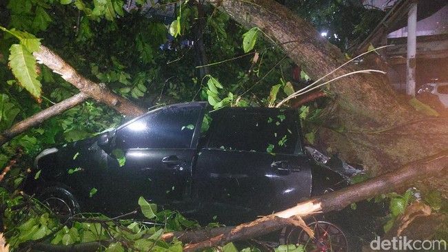"Nggak lama angin kenceng itu, pohon langsung tumbang, nimpa mobil satu di sini mobil yang parkir, sama mobil angkot. Jadi total dua mobil yang ketimpa," sambungnya.