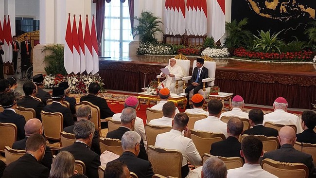 "Seperti yang kita ketahui bersama konflik dan perang terjadi di berbagai belahan dunia, termasuk di Palestina yang telah menelan lebih dari 40 ribu korban jiwa. Indonesia mengapresiasi, dan sangat menghargai sikap Vatikan yang terus menyerukan perdamaian di Palestina," ucap Jokowi.