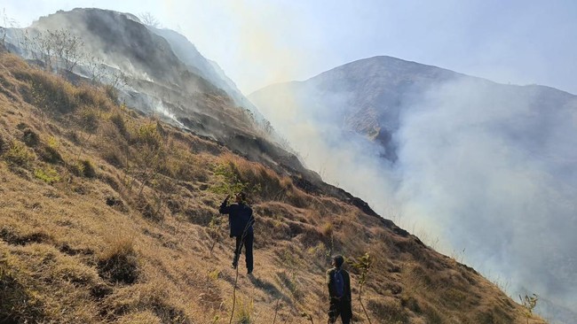 "Kan kejadiannya malam Minggu. Jadi lokus kejadian di puncak bukitnya. Jadi perkiraan sementara bekas api pendaki, karena dari atas apinya," tutur Iskandar.