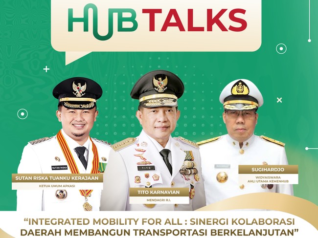 Untuk mengetahui lebih dalam tentang perkembangan transportasi di daerah, khususnya terkait transportasi pintar dan berkelanjutan, tokoh-tokoh penting Tanah Air diajak berdiskusi bersama di Hub Space 2024. Sejumlah narasumber dikonfirmasi hadir, mulai dari Ketua Umum APKASI sekaligus Bupati Dharmasraya Sutan Riska Tuanku, Menteri Dalam Negeri Tito Karnavian dan Widyaiswara Ahli Utama Kemenhub, Sugihardjo.