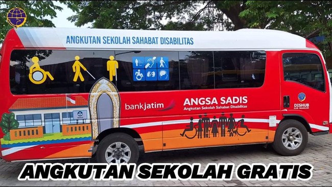 Salah satunya melalui penyelenggaraan angkutan sekolah gratis khusus bagi siswa difabel. Adanya program ini karena melihat kondisi angkutan massal di Kabupaten Nganjuk yang belum optimal.