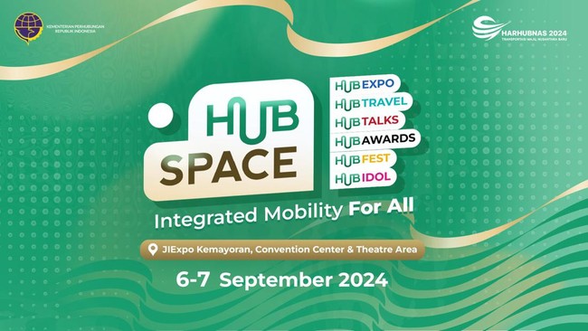 Sekadar informasi, Hub Space 2024 akan diselenggarakan pada 6-7 September 2024 di JIEXpo Kemayoran Convention Center & Theatre Area. Kegiatan ini dihadirkan oleh Kementerian Perhubungan berkolaborasi dengan detikcom dalam rangka menyambut Hari Perhubungan Nasional 2024 (Harhubnas).