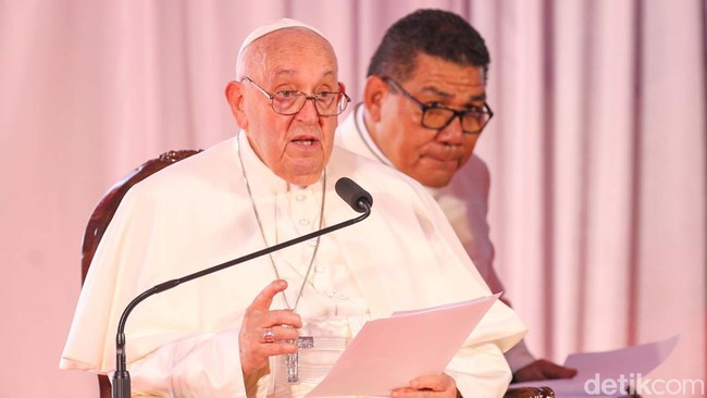 Hal ini disampaikan Paus Fransiskus saat berpidato di Masjid Istiqlal, Kamis (5/9/2024). Paus berpidato dalam bahasa Italia yang diterjemahkan oleh seorang penerjemah.