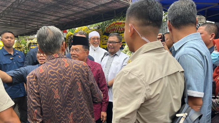 Sementara itu, Jusuf Kalla juga tampak hadir di rumah duka menggunakan batik berwarna merah marun. Selain itu, hadir Anies Baswedan hingga Najwa Shihab di rumah duka Faisal Basri.