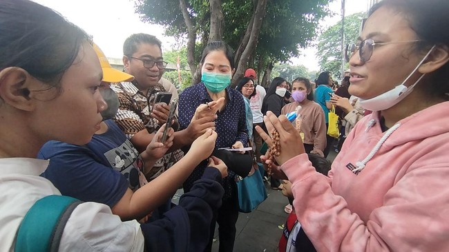 Pantauan detikcom di lokasi, Jalan Medan Merdeka Timur, Jumat (6/9/2024), warga antusias menyambut Paus Fransiskus, yang keluar dari gedung Kedubes Vatikan. Mereka berdesakan dan berebut menyalami hingga diberkati oleh Paus Fransiskus, yang duduk di kursi depan mobil dan membukakan kaca.