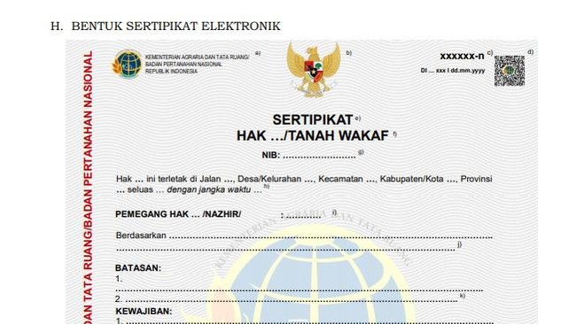 - Sertipikat Hak Atas Tanah yang tadinya terdiri dari beberapa warna dan lembar halaman, sekarang dengan format Sertipikat Elektronik yang tersimpan dalam brankas elektronik pemegang hak.