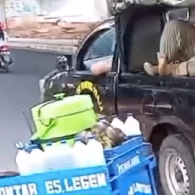 Di pintu mobil yang ditumpangi petugas Satpol PP itu tertulis 'Polisi Pamong Praja Kecamatan Bekasi Barat Kota Bekasi'. Diduga pihak yang menyerahkan uang itu ialah penjual buah lontar es legen.