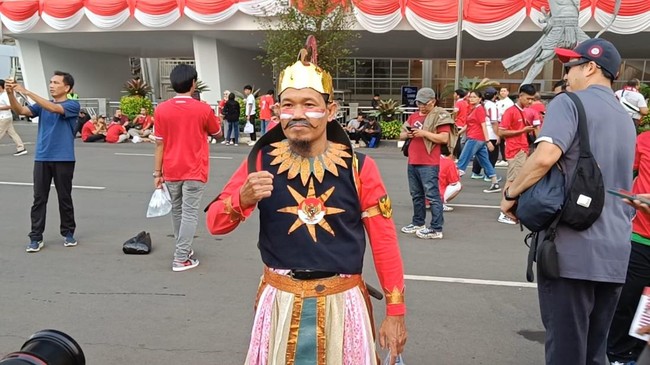 Suporter timnas Indonesia selalu punya cara untuk mendukung tim kebanggaannya. Seperti Arsan, warga Jakarta Barat yang datang dengan kostum Gatot Kaca demi menyemangati penggawa Garuda.