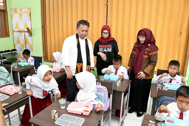 "Kami juga respek karena uji coba program makan siang bergizi ini selain didukung Pemda Kabupaten dan Provinsi, juga melibatkan partisipasi dunia usaha, PKK dan masyarakat. Ini namanya gotong royong. Kami sendiri dari provinsi memberikan dukungan susu agar gizi yang didapatkan anak-anak seimbang," jelasnya.