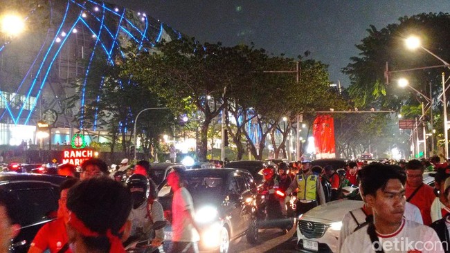 Sementara itu, terlihat juga warga berbondong-bondong keluar dari GBK. Kendaraan yang hendak melintas di kawasan GBK tersendat. Petugas kepolisian juga terlihat mengatur lalu lintas.