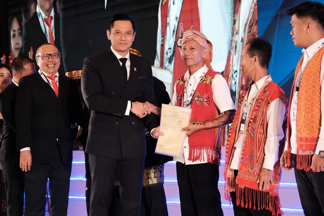 Menteri Agraria dan Tata Ruang/Kepala Badan Pertanahan Nasional (Menteri ATR/Kepala BPN), Agus Harimurti Yudhoyono (AHY) menyerahkan langsung sertifikat untuk tanah ulayat. Termasuk bagi Masyarakat Hukum Adat Menua Kulan dan Iban Menua Sungai Utik, Desa Batu Lintang, Kapuas Hulu, Kalimantan Barat.
