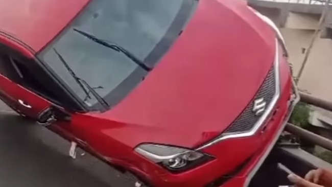 Kejadian ini viral di media sosial. Dalam video yang beredar terlihat posisi dua roda sebelah kiri bagian depan dan belakang naik ke pagar pembatas, sehingga mobil dalam posisi miring.