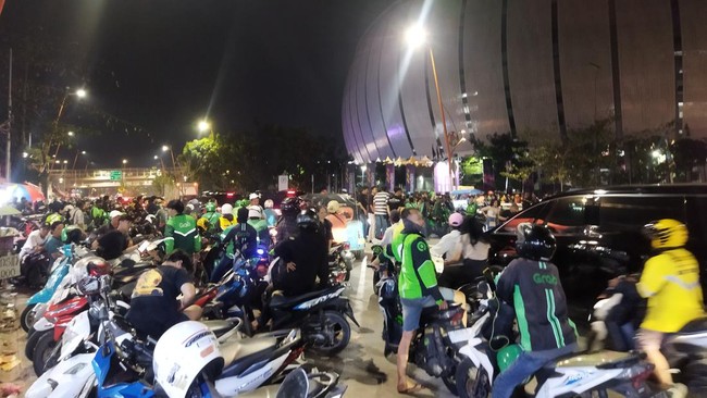Sementara itu, para penonton sendiri sudah mulai memenuhi kawasan JIS sejak sore. Akses jalan di kawasan JIS pun mengalami kemacetan akibat kepadatan penonton yang hadir.