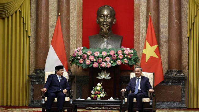 Menteri Pertahanan RI Prabowo Subianto bertemu dengan Presiden Vietnam Tô Lâm kemarin. Pertemuan itu membahas hubungan bilateral khususnya di bidang pertahanan.