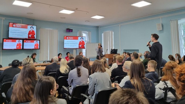 Ada juga mahasiswa Rusia lainnya, Ekaterina dan Emi yang masing-masing bertanya soal keamanan regional serta cara yang dilakukan Megawati untuk memperkenalkan Pancasila ke dunia. Megawati pun menjawab satu persatu pertanyaan dari para mahasiswa tersebut.