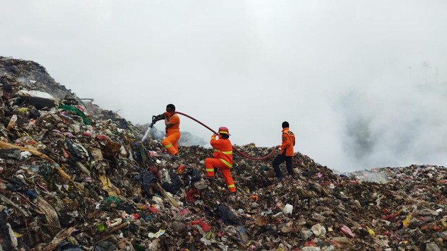 Petugas Pemadam Kebakaran Cilegon masih berupaya melakukan pendinginan kebakaran tersebut. Asap hasil pembakaran mencemari warga di sekitar TPSA.