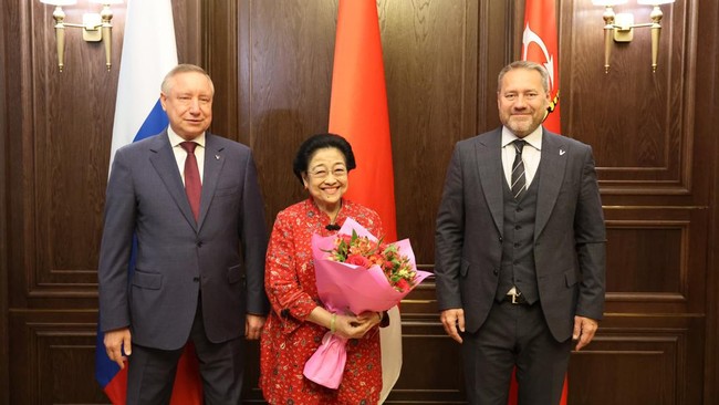 Gubernur St Petersburg Alexander Beglov menjamu Presiden ke-5 RI sekaligus Ketua Umum PDIP Megawati Soekarnoputri. Beglov pun bercerita kesan warganya terhadap Presiden pertama RI Sukarno (Bung Karno) yang punya jejak sendiri di St Petersburg.