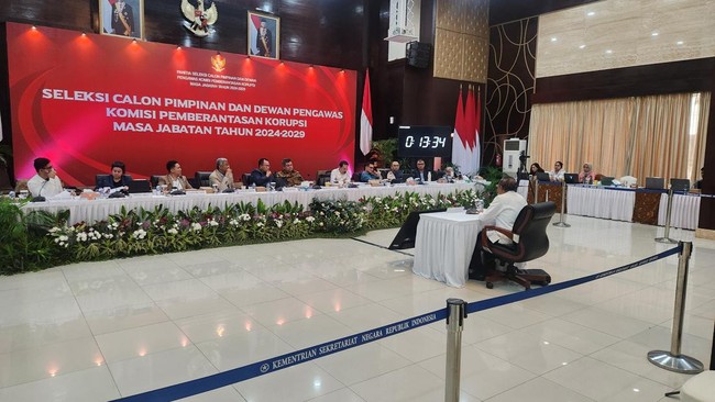 "Kalau Bapak terpilih, hal apa yang Bapak akan lakukan untuk mengembalikan kepercayaan masyarakat yang dulu selalu nomor 1 tiba-tiba sampai di bawah polisi?" tanya salah satu penguji yang merupakan mantan pimpinan KPK, Laode M Syarif, dalam tes wawancara tersebut di Kemensetneg, Jakarta, Kamis (19/9/2024).
