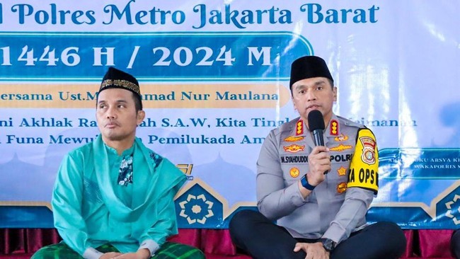 Syahduddi menambahkan bahwa peringatan maulid Nabi kali ini sekaligus menjadi bagian dari upaya untuk mewujudkan Pilkada 2024 yang aman dan sukses. Dengan mempraktikkan ajaran Nabi, diharapkan seluruh anggota Polres Metro Jakarta Barat dapat lebih profesional dan berintegritas dalam menjalankan tugasnya.