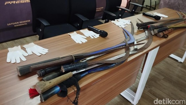 "Tim selanjutnya mengamankan 22 orang berikut barang bukti senjata tajam, dan dari 22 orang diamankan, 3 orang kedapatan memegang senjata tajam tersebut," jelasnya.