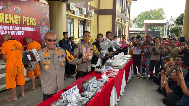 "Dua bandar sekaligus kurir sabu dan ekstasi ini ditangkap di lokasi berbeda di Kota Pekanbaru, Senin kemarin. Keduanya mengendalikan peredaran sabu lintas provinsi," ujar Kapolres Serang AKBP Condro Sasongko, Selasa (24/9/2024).