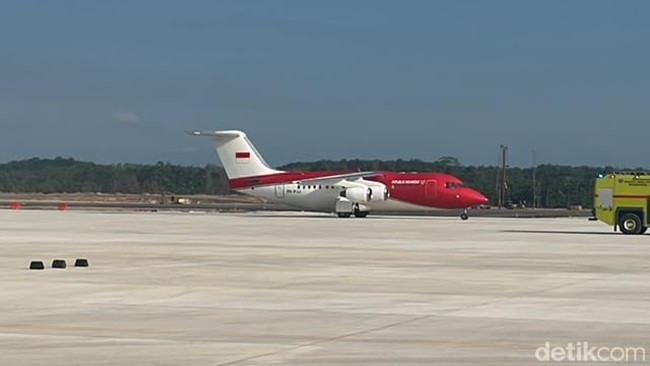 Pesawat kepresidenan yang ditumpangi Presiden Joko Widodo (Jokowi) berhasil melakukan pendaratan perdana di Bandara Ibu Kota Nusantara (IKN). Proses pendaratan berjalan lancar.