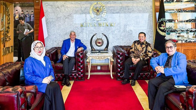 Ketua MPR RI ke-16 Bambang Soesatyo (Bamsoet) menerima masukan dari Ketua Umum Forum Komunikasi Putra Putri Purnawirawan dan Putra Putri TNI Polri (FKPPI) Pontjo Sutowo mengenai perlunya MPR RI melakukan penyempurnaan terhadap UUD NRI tahun 1945.