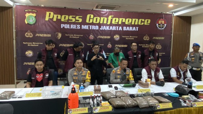 "Adapun Saudara OS menjelaskan bahwa Saudara OS melakukan pembuatan tembakau sintetis ini berdasarkan perintah dari BOS (DPO)," kata Kapolres Metro Jakbar Kombes Syahduddi dalam konferensi pers di Polres Metro Jakbar, Selasa (24/9).