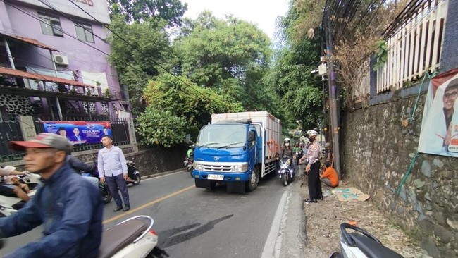 Dari video yang dilihat detikcom, terlihat truk tersebut berwarna biru bermuatan hebel. Truk mengarah ke arah Pancoran Mas terhenti di tanjakan.