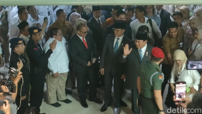 Terlihat mendampingi kedatangan Prabowo di Nusantara II yakni Menkumham Supratman Andi Agtas hingga Wakil Ketua Komisi I DPR RI Sugiono. Tampak pula di jajaran ini Waketum Gerindra Budi Djiwandono.