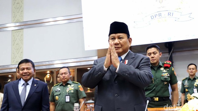 Sambutan hangat diberikan Komisi I DPR kepada Menteri Pertahanan Prabowo Subianto saat rapat bersama di akhir jabatan periode 2019-2024. Ucapan pamit Prabowo dibalas anggota Komisi I DPR dengan standing applause.