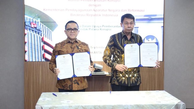 Acara penandatanganan ini dilaksanakan di Kantor KPK pada Jumat (27/9). Dihadiri Menteri PANRB Abdullah Azwar Anas dan Ketua KPK Nawawi Pomolango.