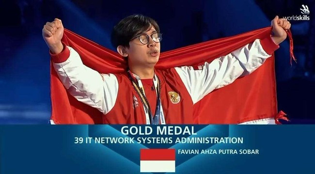 Dari delegasi tersebut, salah satu peserta asal Jawa Barat Favian Ahza Putra Sobar meraih medali emas untuk bidang IT Network System Administration. Favian merupakan alumni SMK Negeri 1 Kota Cimahi, Jabar, dan mahasiswa Universitas Komputer (Unikom) Indonesia.