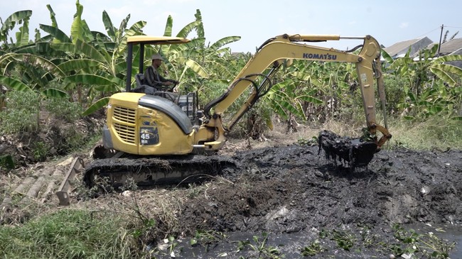 "Dengan pengerukan ini, kami harapkan selain bisa mengatasi genangan, juga dapat menjaga pasokan air untuk sawah warga kami yang menanam padi, palawija, dan pisang," jelasnya.