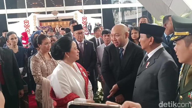 Presiden terpilih sekaligus Menhan Prabowo Subianto menghadiri pelantikan anggota MPR/DPR/DPD periode 2024-2029 hari ini. Seusai pelantikan, ada momen Ketua DPR periode 2019-2024 Puan Maharani berbincang akrab dengan Prabowo, terlihat juga putra Prabowo, Didit Hediprasetyo.