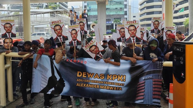 Massa yang tergabung dalam Komite Aksi Mahasiswa dan Pemuda untuk Demokrasi (KAMPUD) menggeruduk gedung Dewan Pengawas (Dewas) KPK. Mereka meminta mengusut dugaan pelanggaran etik Wakil Ketua KPK Alexander Marwata.