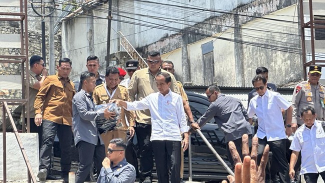 Presiden Joko Widodo (Jokowi) melakukan kunjungan kerja ke Timor Tengah Utara (TTU), Nusa Tenggara Timur (NTT). Jokowi membagi-bagikan kaus bergambar dirinya ke warga.