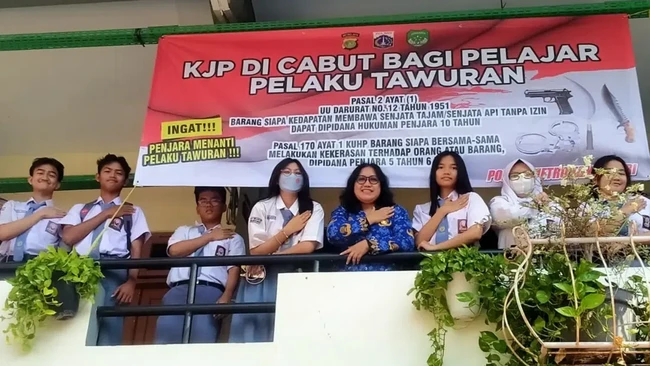Spanduk tersebut berisikan pesan tegas 'KJP Dicabut Bagi Pelajar yang Terlibat Tawuran'. Pemasangan spanduk itu dilakukan untuk mengimbau para pelajar agar tidak terlibat dalam aksi tawuran.