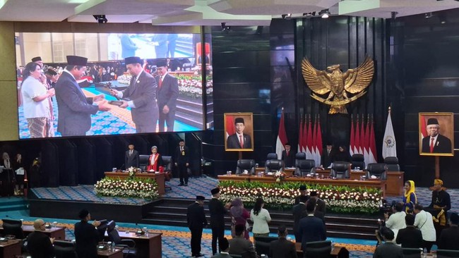 Pantauan detikcom di Ruang Rapat Paripurna DPRD DKI Jakarta, Jumat (4/10/2024), pukul 14.50 WIB, Penjabat (Pj) Gubernur DKI Jakarta Heru Budi Hartono juga hadir. Sidang paripurna pelantikan dipimpin oleh Ketua Sementara DPRD DKI Jakarta Ahmad Yani.