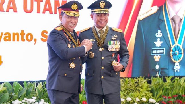 Kapolri Jenderal Listyo Sigit Prabowo menganugerahkan tanda kehormatan Bintang Bhayangkara Utama kepada Panglima TNI Jenderal Agus Subiyanto. Selain Panglima TNI, tanda kehormatan diberikan Kapolri kepada tiga kepala staf angkatan.