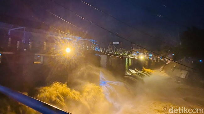 Hujan deras yang mengguyur kawasan Puncak, Bogor, mengakibatkan debit Sungai Ciliwung meningkat malam ini. Tinggi muka air (TMA) Sungai Ciliwung di Bendung Katulampa Bogor mencapai 80 sentimeter dengan status siaga 4.
